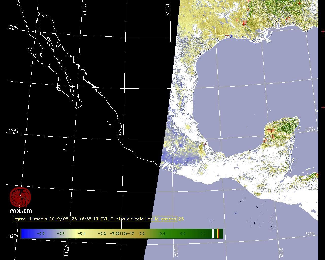 Se considera como punto de calor al elemento espacial mínimo de la imagen (pixel) que reporta una temperatura elevada. Para las imágenes diurnas la temperatura mínima considera es de 42 C y para las imágenes nocturnas es de 25 C. |