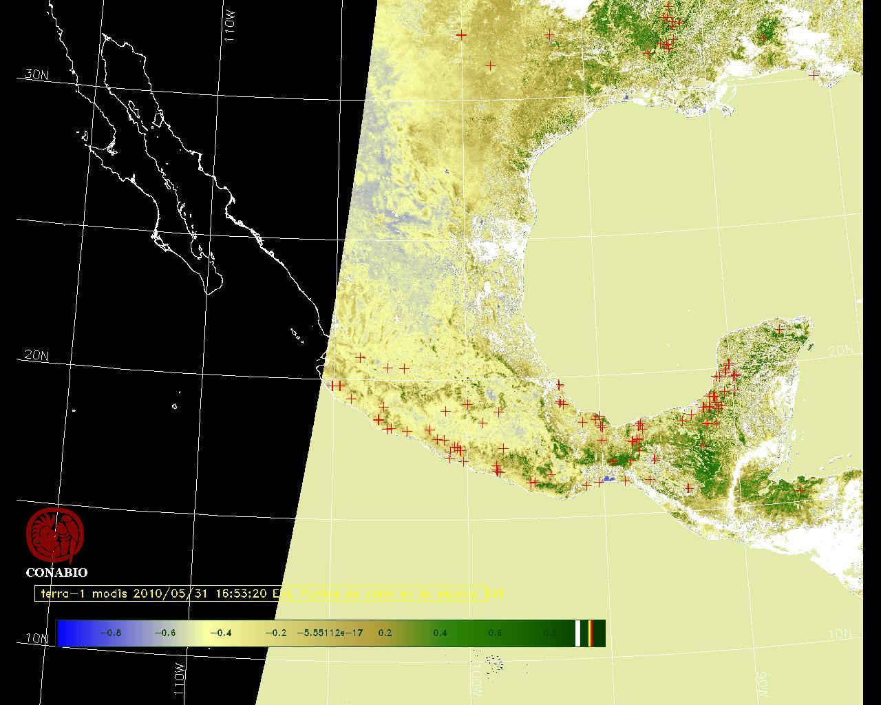Los valores del índice van de -1 a 1, entre más cercano al valor 1 la vegetación presenta mayor vigor. Los índices de vegetación son utilizados para conocer el comportamiento de la vegetación tanto espacial como temporal. |