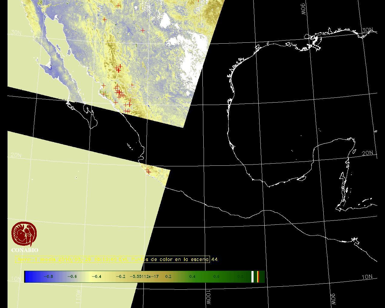 Se considera como punto de calor al elemento espacial mínimo de la imagen (pixel) que reporta una temperatura elevada. Para las imágenes diurnas la temperatura mínima considera es de 42 C y para las imágenes nocturnas es de 25 C. |