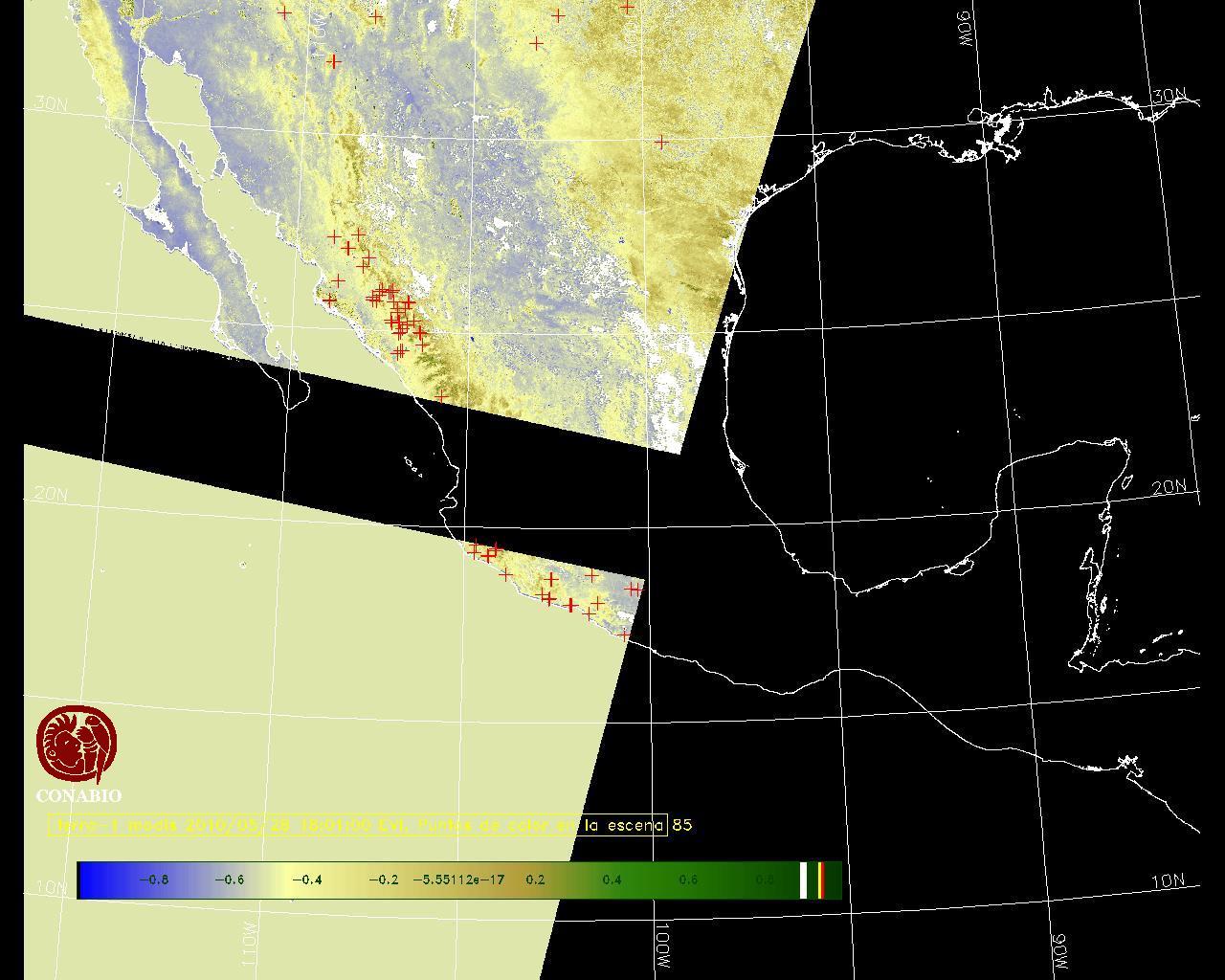 Los valores del índice van de -1 a 1, entre más cercano al valor 1 la vegetación presenta mayor vigor. Los índices de vegetación son utilizados para conocer el comportamiento de la vegetación tanto espacial como temporal. |