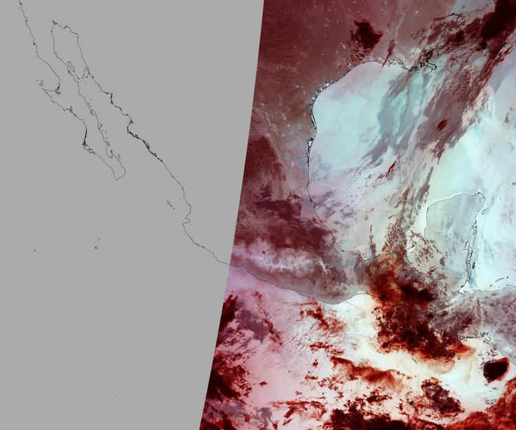Nubosidad en el terreno:4% Nubosidad sobre México:2% Datos nulos en la escena:45% Datos nulos sobre México:53% |
