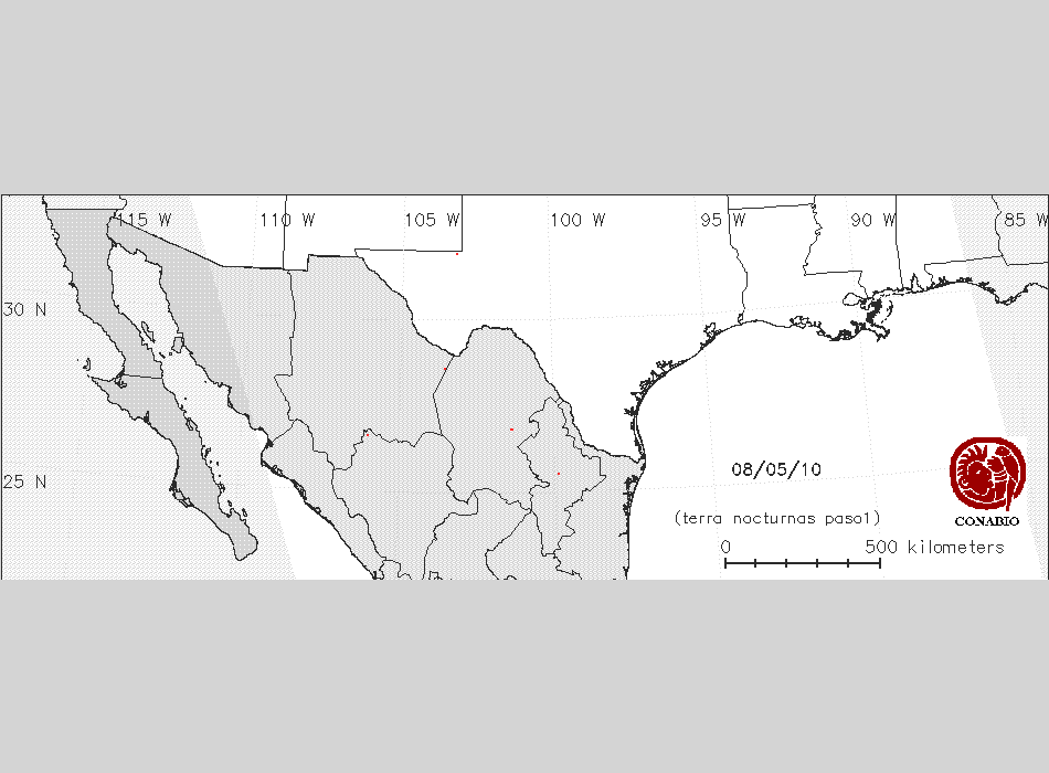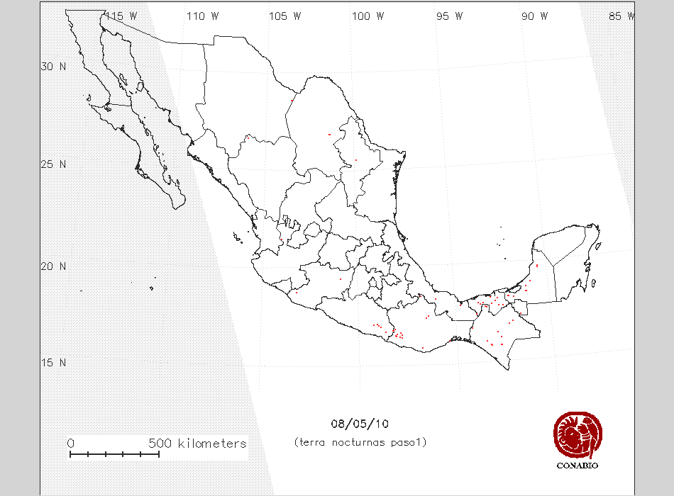 Se considera como punto de calor al elemento espacial mínimo de la imagen (pixel) que reporta una temperatura elevada. Para las imágenes diurnas la temperatura mínima considera es de 42 C y para las imágenes nocturnas es de 25 C. |