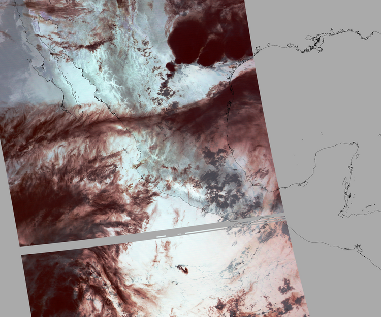 Nubosidad en el terreno:31% Nubosidad sobre México:21% Datos nulos en la escena:30% Datos nulos sobre México:11% |