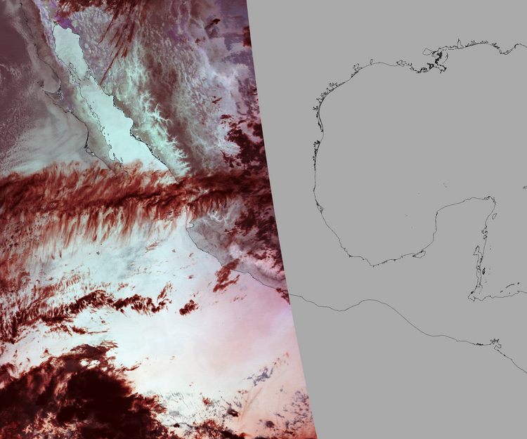 Nubosidad en el terreno:9% Nubosidad sobre México:10% Datos nulos en la escena:47% Datos nulos sobre México:37% |