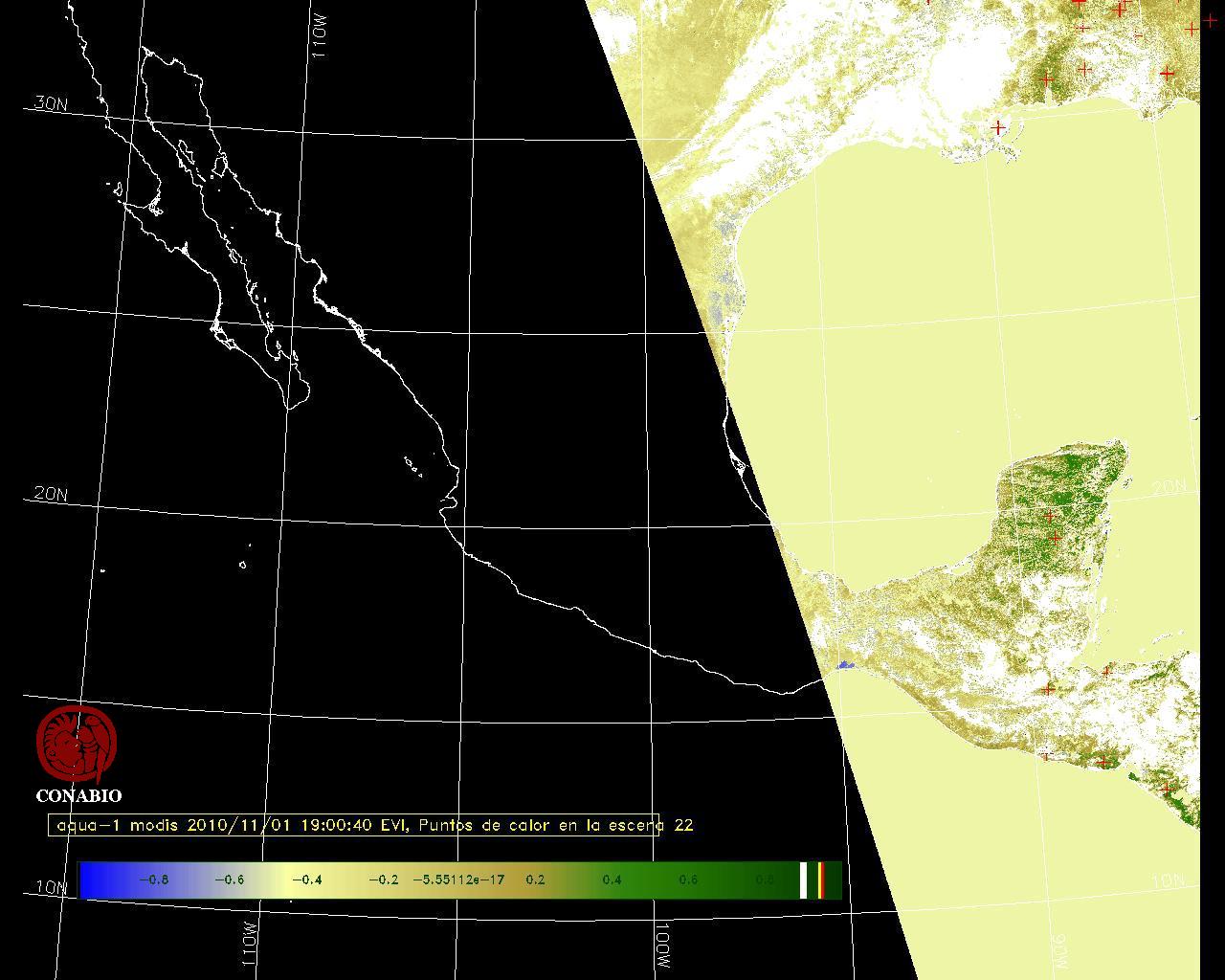 Se considera como punto de calor al elemento espacial mínimo de la imagen (pixel) que reporta una temperatura elevada. Para las imágenes diurnas la temperatura mínima considera es de 42 C y para las imágenes nocturnas es de 25 C. |