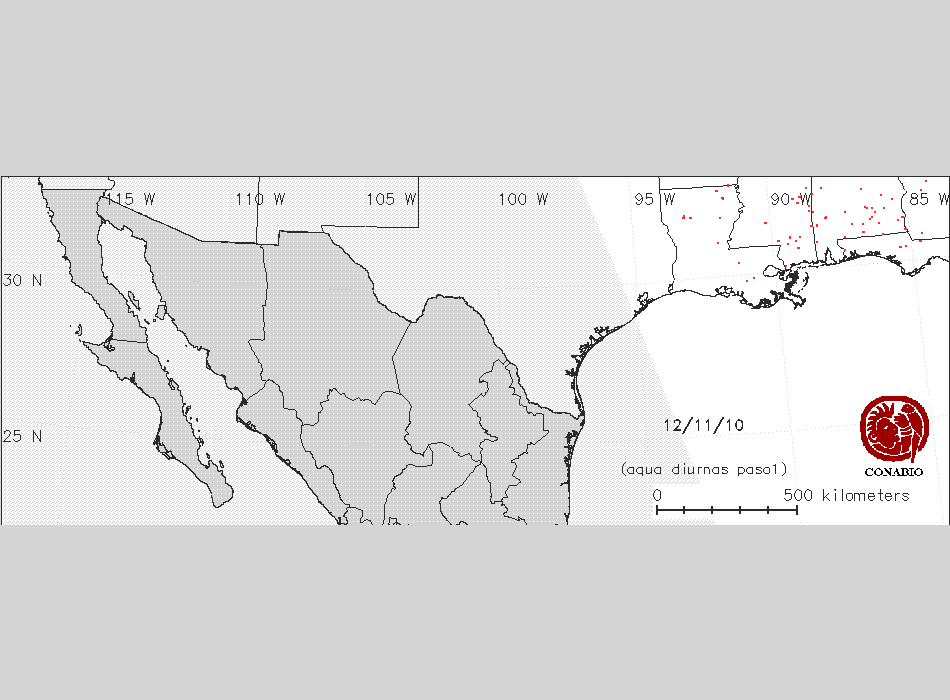 Se considera como punto de calor al elemento espacial mínimo de la imagen (pixel) que reporta una temperatura elevada. Para las imágenes diurnas la temperatura mínima considera es de 42 C y para las imágenes nocturnas es de 25 C. |