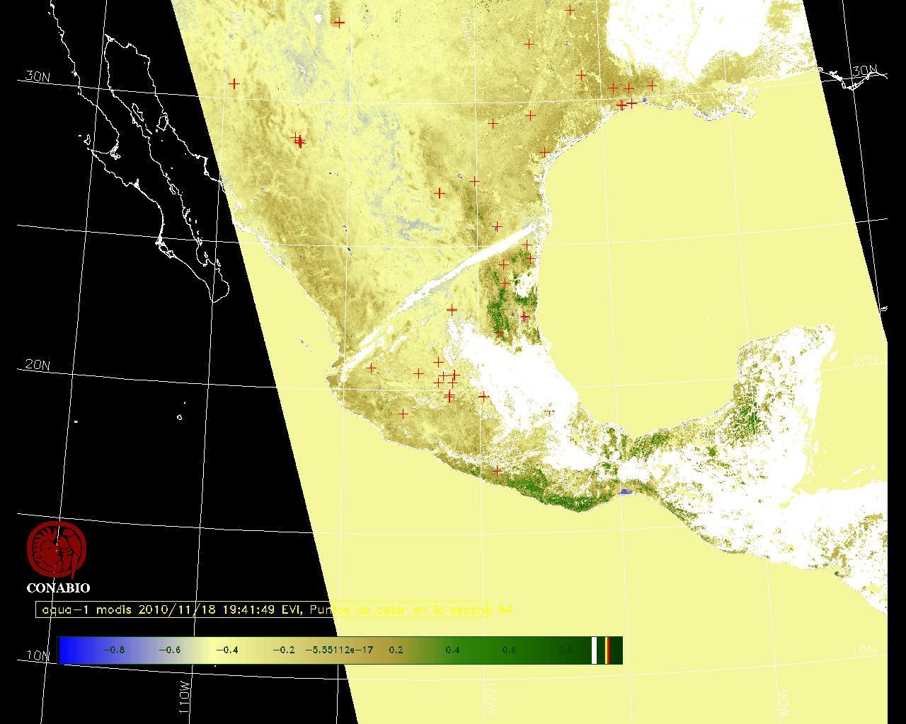 Se considera como punto de calor al elemento espacial mínimo de la imagen (pixel) que reporta una temperatura elevada. Para las imágenes diurnas la temperatura mínima considera es de 42 C y para las imágenes nocturnas es de 25 C. |