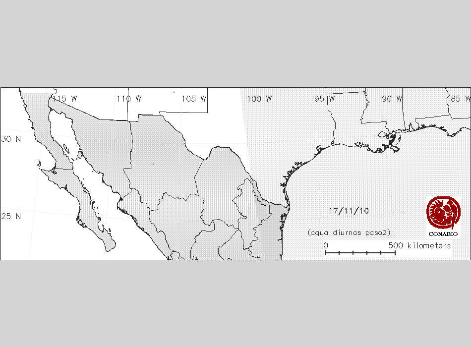Se considera como punto de calor al elemento espacial mínimo de la imagen (pixel) que reporta una temperatura elevada. Para las imágenes diurnas la temperatura mínima considera es de 42 C y para las imágenes nocturnas es de 25 C. |