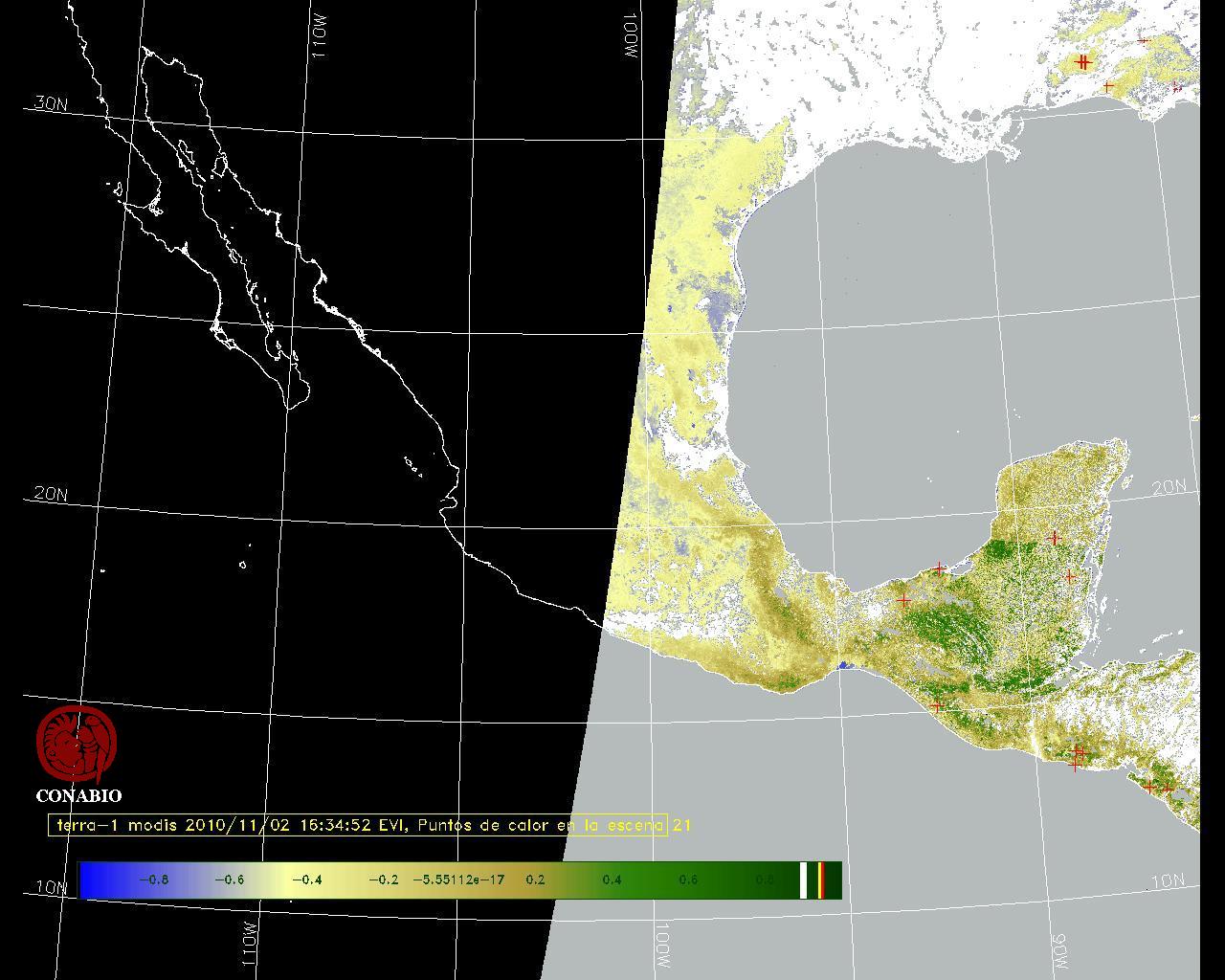 Se considera como punto de calor al elemento espacial mínimo de la imagen (pixel) que reporta una temperatura elevada. Para las imágenes diurnas la temperatura mínima considera es de 42 C y para las imágenes nocturnas es de 25 C. |