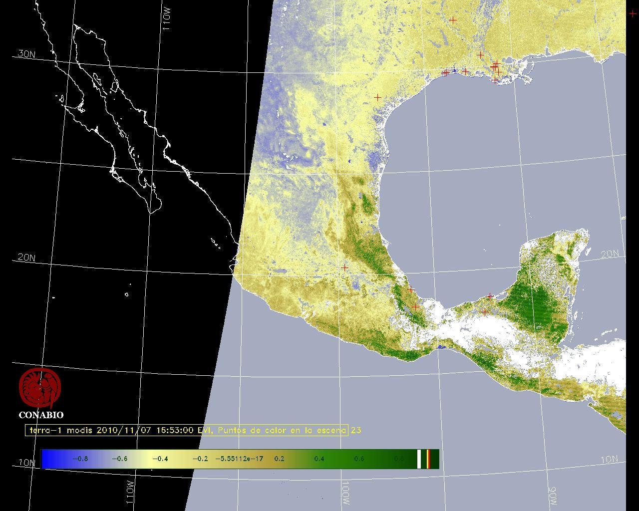 Se considera como punto de calor al elemento espacial mínimo de la imagen (pixel) que reporta una temperatura elevada. Para las imágenes diurnas la temperatura mínima considera es de 42 C y para las imágenes nocturnas es de 25 C. |
