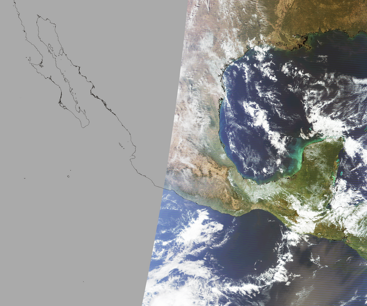 Nubosidad en el terreno:12% Nubosidad sobre México:11% Datos nulos en la escena:45% Datos nulos sobre México:53% |