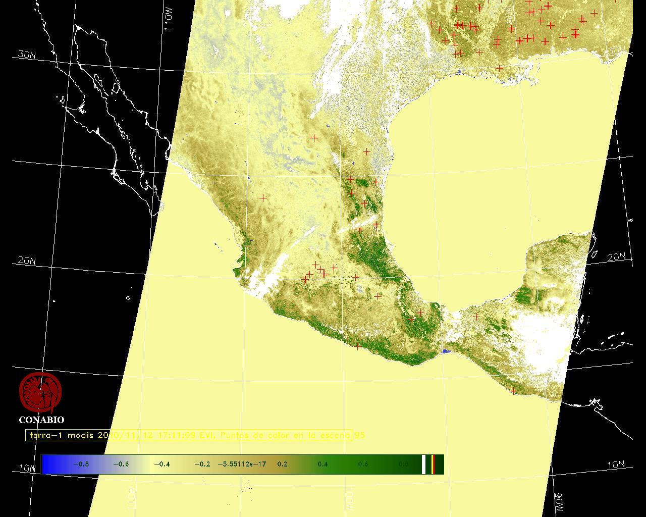 Se considera como punto de calor al elemento espacial mínimo de la imagen (pixel) que reporta una temperatura elevada. Para las imágenes diurnas la temperatura mínima considera es de 42 C y para las imágenes nocturnas es de 25 C. |