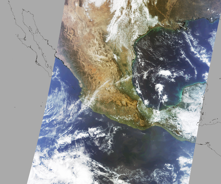 Nubosidad en el terreno:12% Nubosidad sobre México:5% Datos nulos en la escena:28% Datos nulos sobre México:16% |