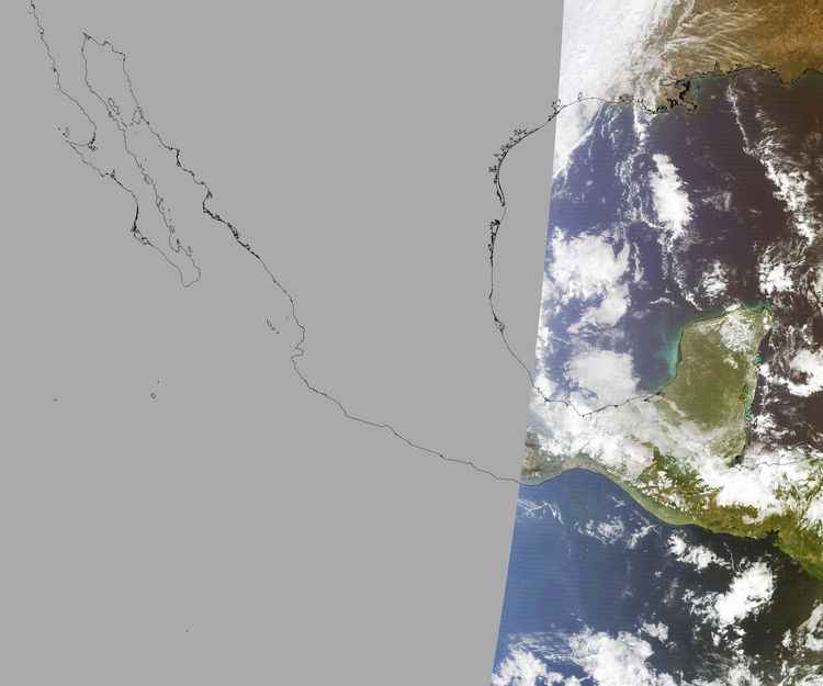 Nubosidad en el terreno:32% Nubosidad sobre México:27% Datos nulos en la escena:64% Datos nulos sobre México:83% |
