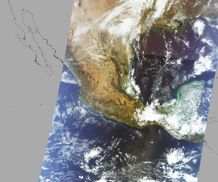 Nubosidad en el terreno:17% Nubosidad sobre México:10% Datos nulos en la escena:29% Datos nulos sobre México:22% |