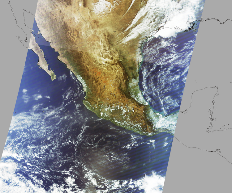 Nubosidad en el terreno:11% Nubosidad sobre México:1% Datos nulos en la escena:28% Datos nulos sobre México:15% |