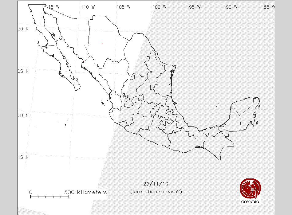 Se considera como punto de calor al elemento espacial mínimo de la imagen (pixel) que reporta una temperatura elevada. Para las imágenes diurnas la temperatura mínima considera es de 42 C y para las imágenes nocturnas es de 25 C. |