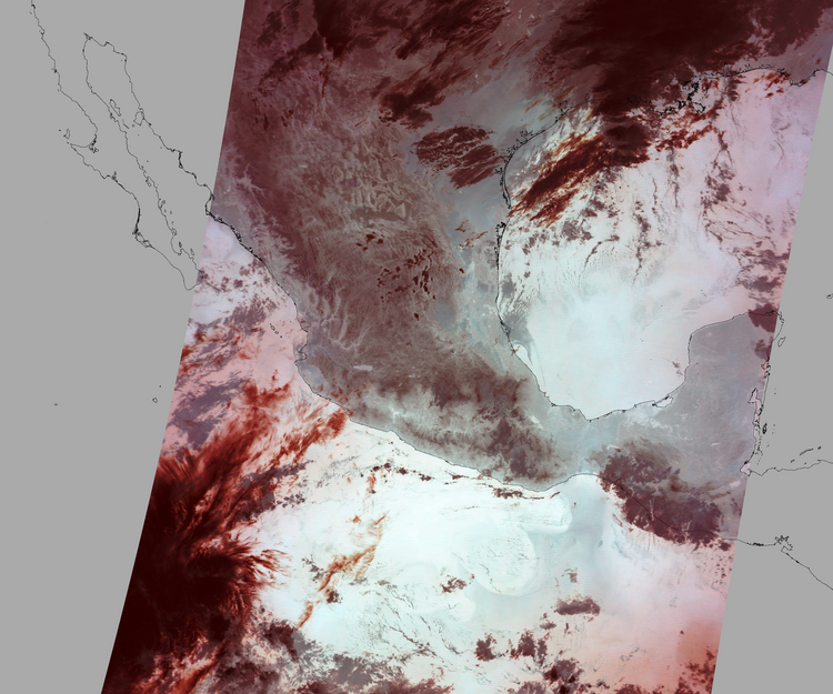 Nubosidad en el terreno:17% Nubosidad sobre México:1% Datos nulos en la escena:28% Datos nulos sobre México:16% |