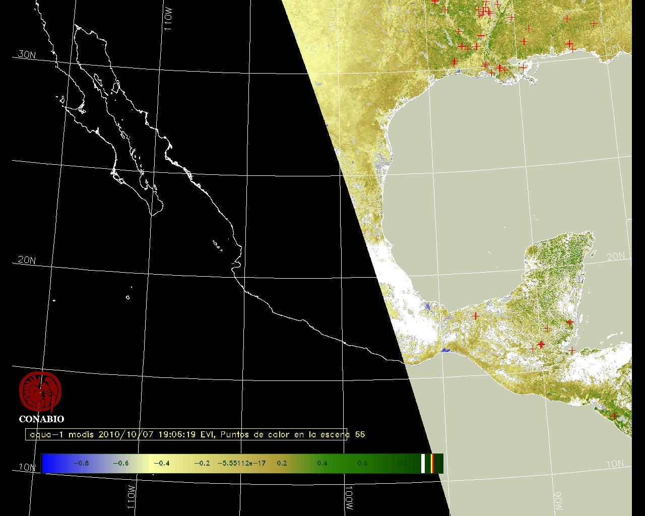 Se considera como punto de calor al elemento espacial mínimo de la imagen (pixel) que reporta una temperatura elevada. Para las imágenes diurnas la temperatura mínima considera es de 42 C y para las imágenes nocturnas es de 25 C. |