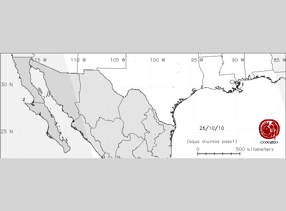 Se considera como punto de calor al elemento espacial mínimo de la imagen (pixel) que reporta una temperatura elevada. Para las imágenes diurnas la temperatura mínima considera es de 42 C y para las imágenes nocturnas es de 25 C. |