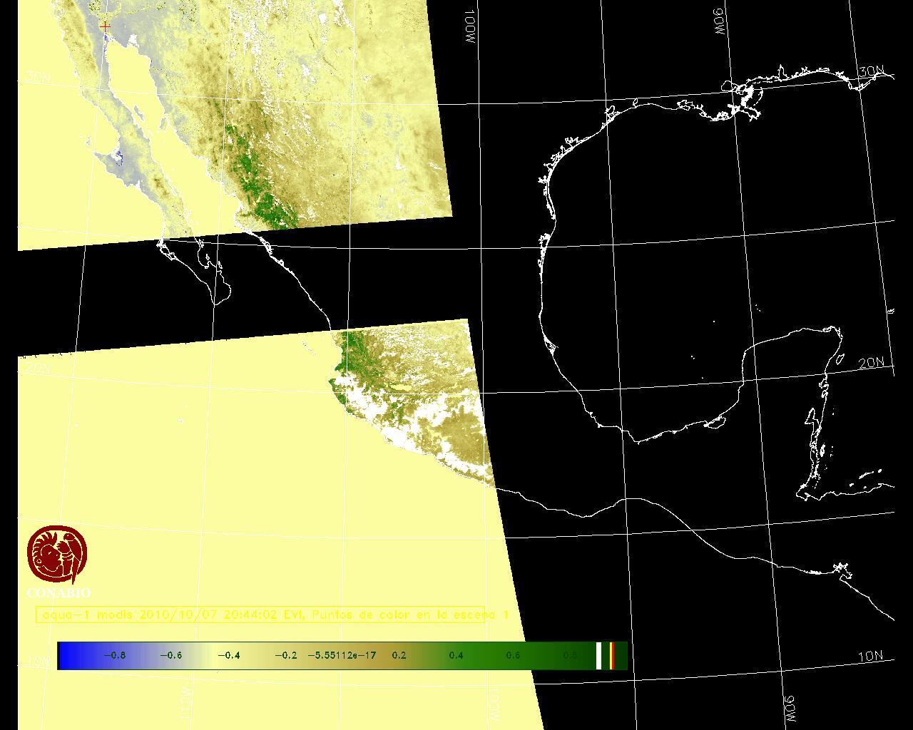 Se considera como punto de calor al elemento espacial mínimo de la imagen (pixel) que reporta una temperatura elevada. Para las imágenes diurnas la temperatura mínima considera es de 42 C y para las imágenes nocturnas es de 25 C. |