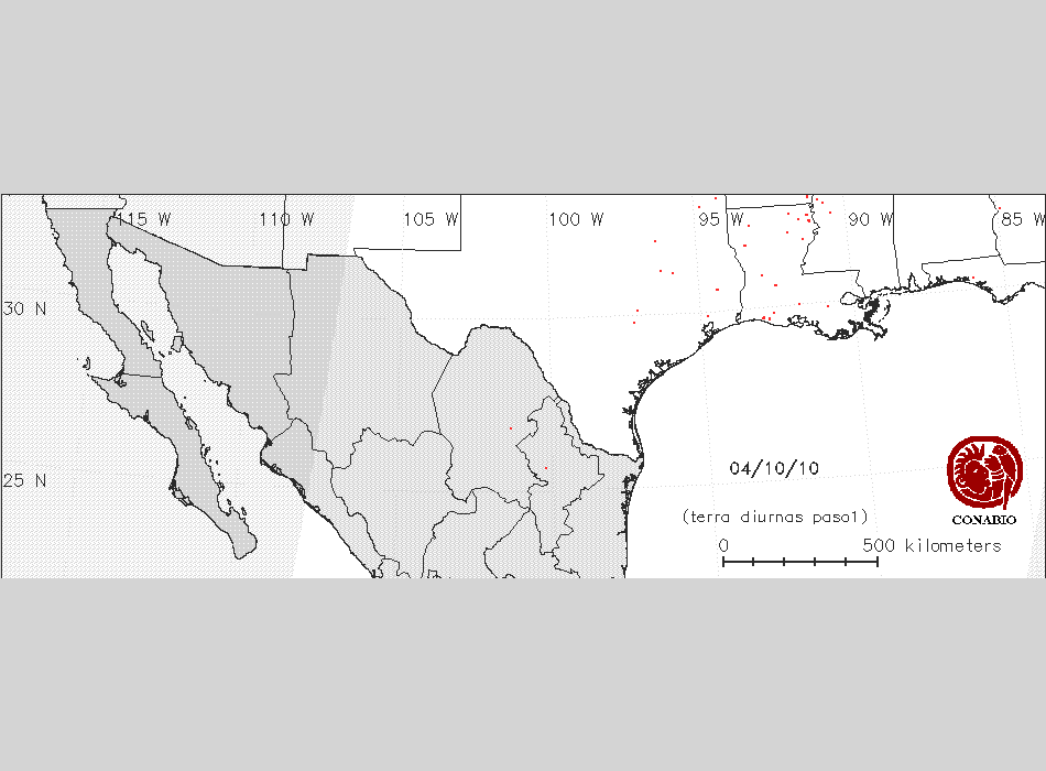 Se considera como punto de calor al elemento espacial mínimo de la imagen (pixel) que reporta una temperatura elevada. Para las imágenes diurnas la temperatura mínima considera es de 42 C y para las imágenes nocturnas es de 25 C. |