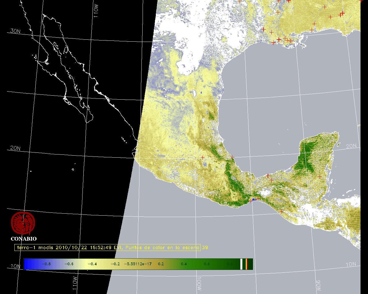 Se considera como punto de calor al elemento espacial mínimo de la imagen (pixel) que reporta una temperatura elevada. Para las imágenes diurnas la temperatura mínima considera es de 42 C y para las imágenes nocturnas es de 25 C. |