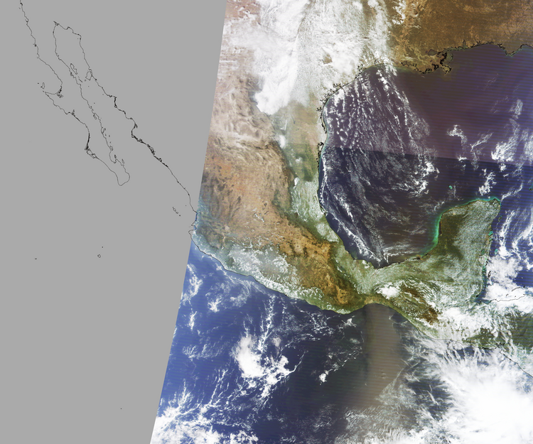 Nubosidad en el terreno:19% Nubosidad sobre México:4% Datos nulos en la escena:36% Datos nulos sobre México:35% |