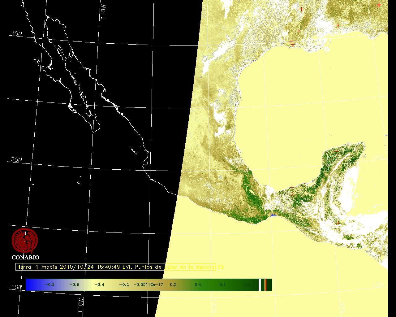 Nubosidad en el terreno:20% Nubosidad sobre México:10% Datos nulos en la escena:45% Datos nulos sobre México:54% |