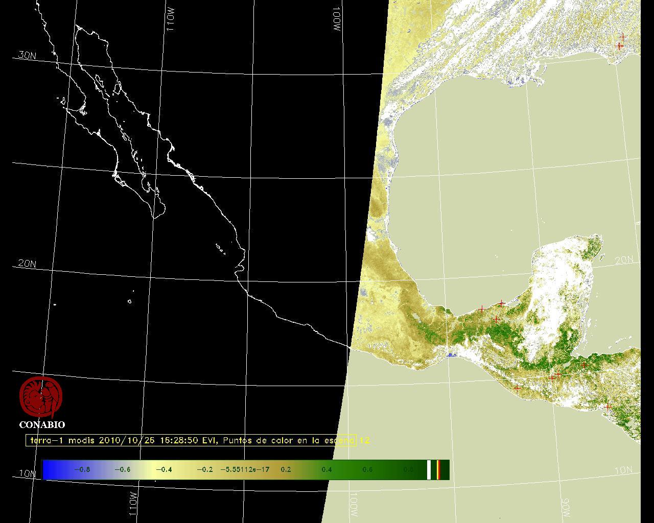 Se considera como punto de calor al elemento espacial mínimo de la imagen (pixel) que reporta una temperatura elevada. Para las imágenes diurnas la temperatura mínima considera es de 42 C y para las imágenes nocturnas es de 25 C. |