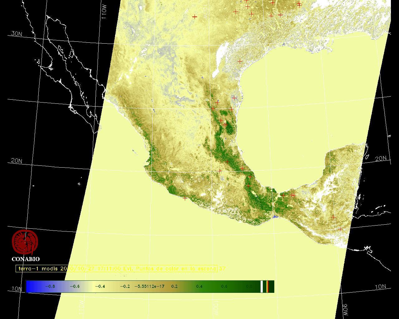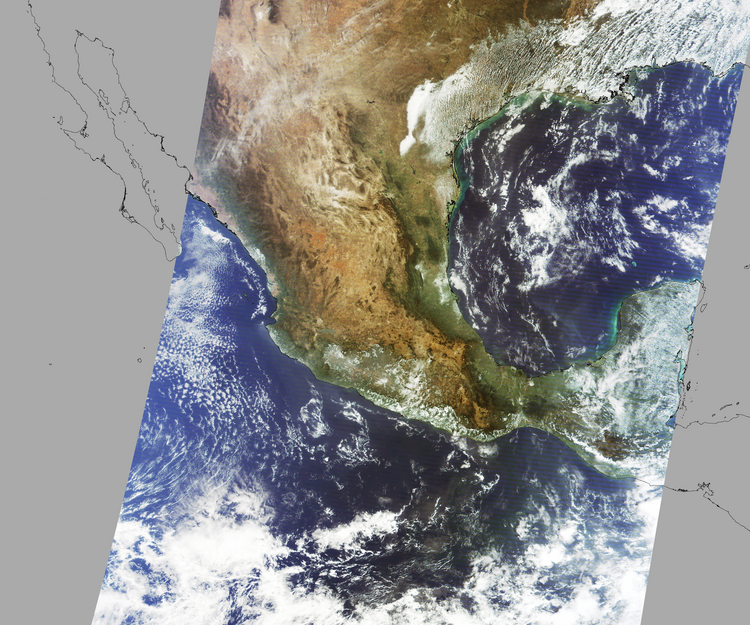 Nubosidad en el terreno:7% Nubosidad sobre México:3% Datos nulos en la escena:28% Datos nulos sobre México:16% |