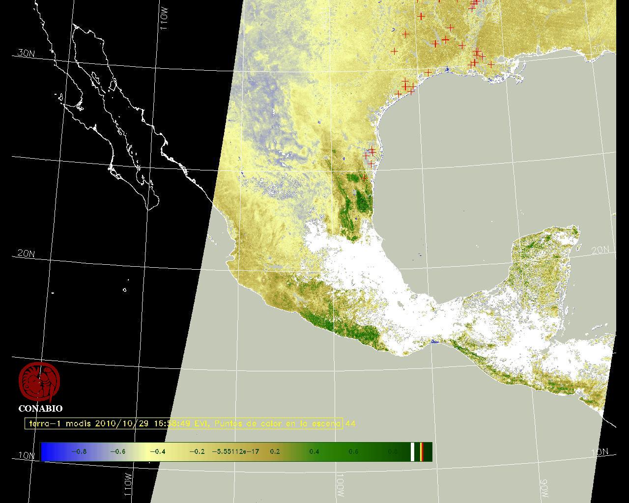 Nubosidad en el terreno:17% Nubosidad sobre México:22% Datos nulos en la escena:32% Datos nulos sobre México:28% |