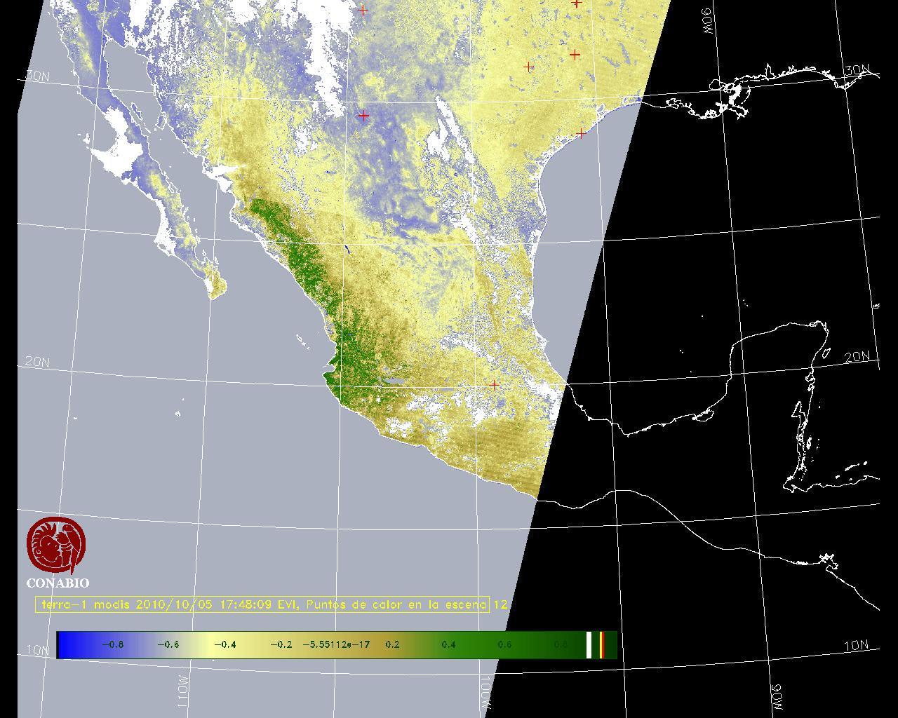 Se considera como punto de calor al elemento espacial mínimo de la imagen (pixel) que reporta una temperatura elevada. Para las imágenes diurnas la temperatura mínima considera es de 42 C y para las imágenes nocturnas es de 25 C. |