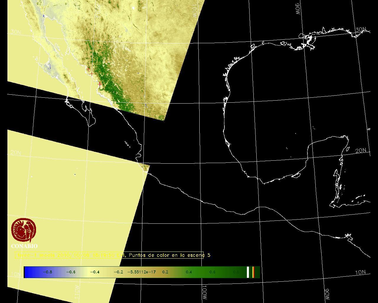 Se considera como punto de calor al elemento espacial mínimo de la imagen (pixel) que reporta una temperatura elevada. Para las imágenes diurnas la temperatura mínima considera es de 42 C y para las imágenes nocturnas es de 25 C. |