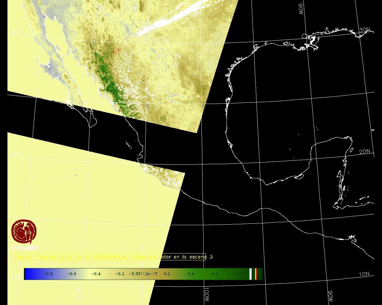 Se considera como punto de calor al elemento espacial mínimo de la imagen (pixel) que reporta una temperatura elevada. Para las imágenes diurnas la temperatura mínima considera es de 42 C y para las imágenes nocturnas es de 25 C. |