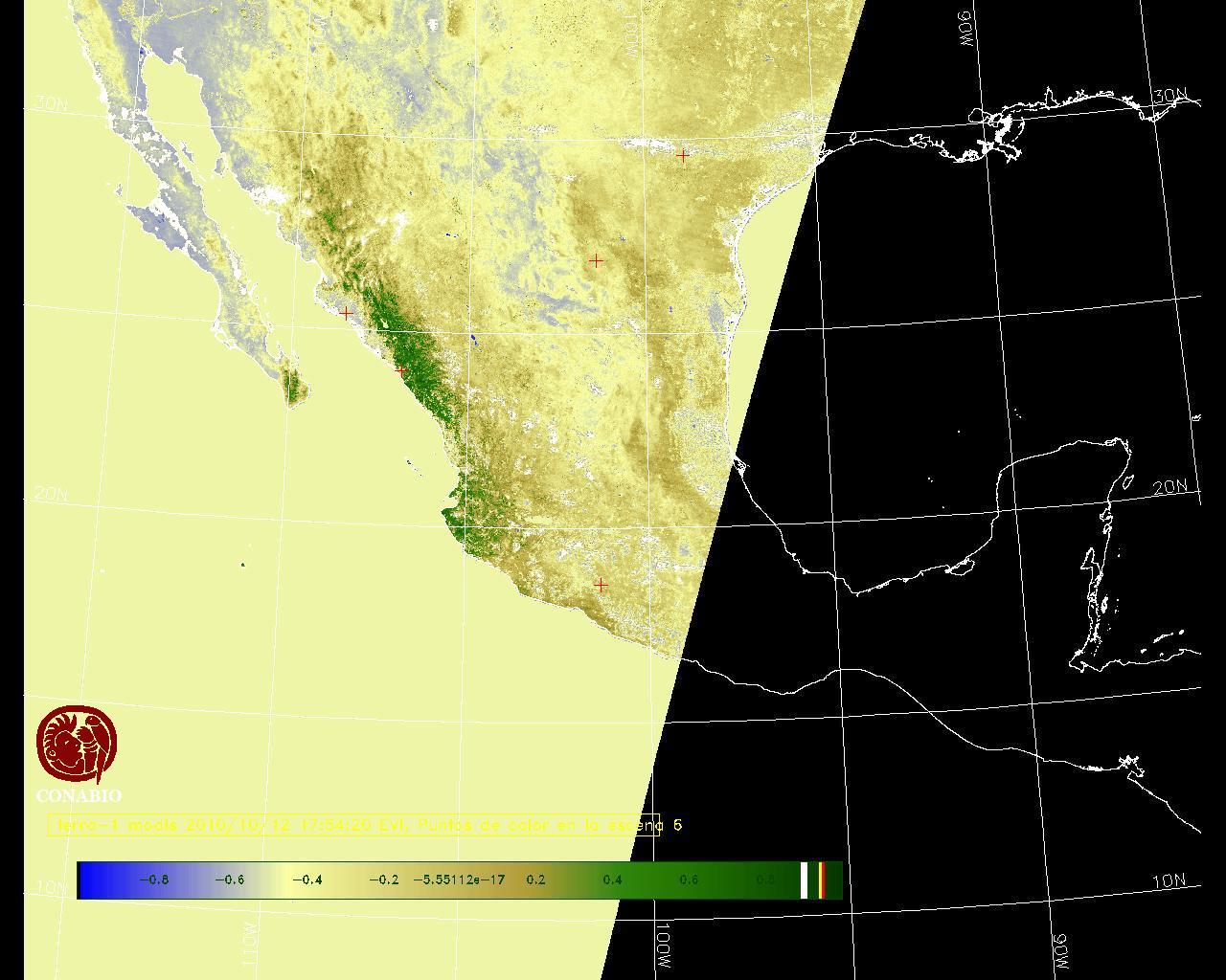 Se considera como punto de calor al elemento espacial mínimo de la imagen (pixel) que reporta una temperatura elevada. Para las imágenes diurnas la temperatura mínima considera es de 42 C y para las imágenes nocturnas es de 25 C. |