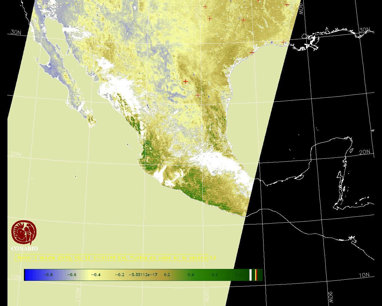 Los valores del índice van de -1 a 1, entre más cercano al valor 1 la vegetación presenta mayor vigor. Los índices de vegetación son utilizados para conocer el comportamiento de la vegetación tanto espacial como temporal. |