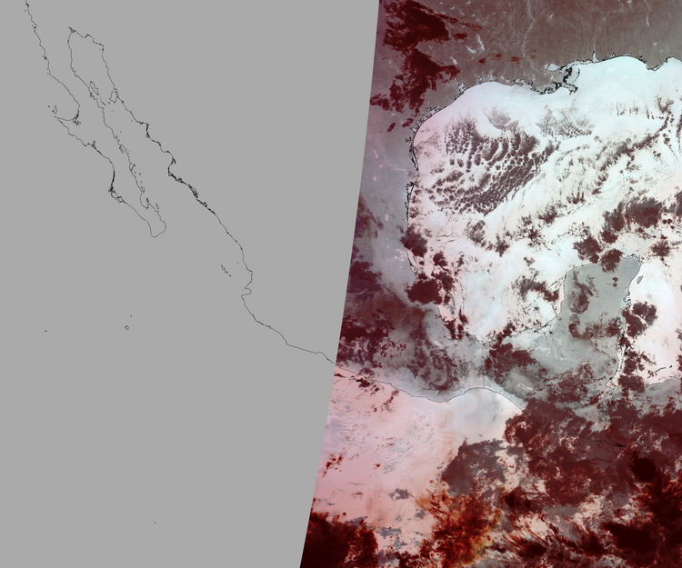 Nubosidad en el terreno:3% Nubosidad sobre México:0% Datos nulos en la escena:50% Datos nulos sobre México:63% |