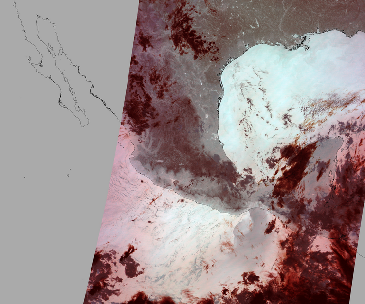 Nubosidad en el terreno:9% Nubosidad sobre México:9% Datos nulos en la escena:32% Datos nulos sobre México:28% |