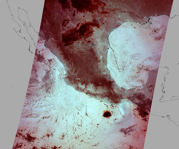 Nubosidad en el terreno:7% Nubosidad sobre México:5% Datos nulos en la escena:28% Datos nulos sobre México:15% |