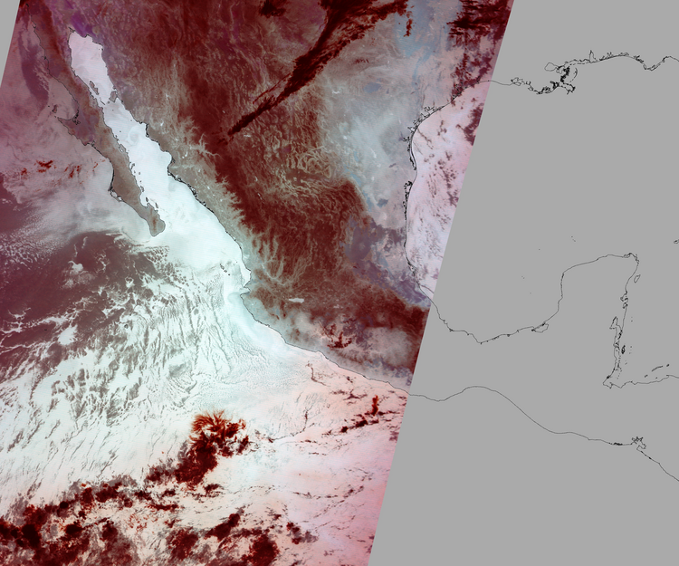 Nubosidad sobre el terreno:3% Nubosidad sobre México:0% Datos nulos en la escena:35% Datos nulos sobre México:18% |