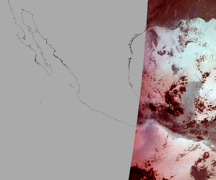 Nubosidad sobre el terreno:2% Nubosidad sobre México:5% Datos nulos en la escena:64% Datos nulos sobre México:83% |