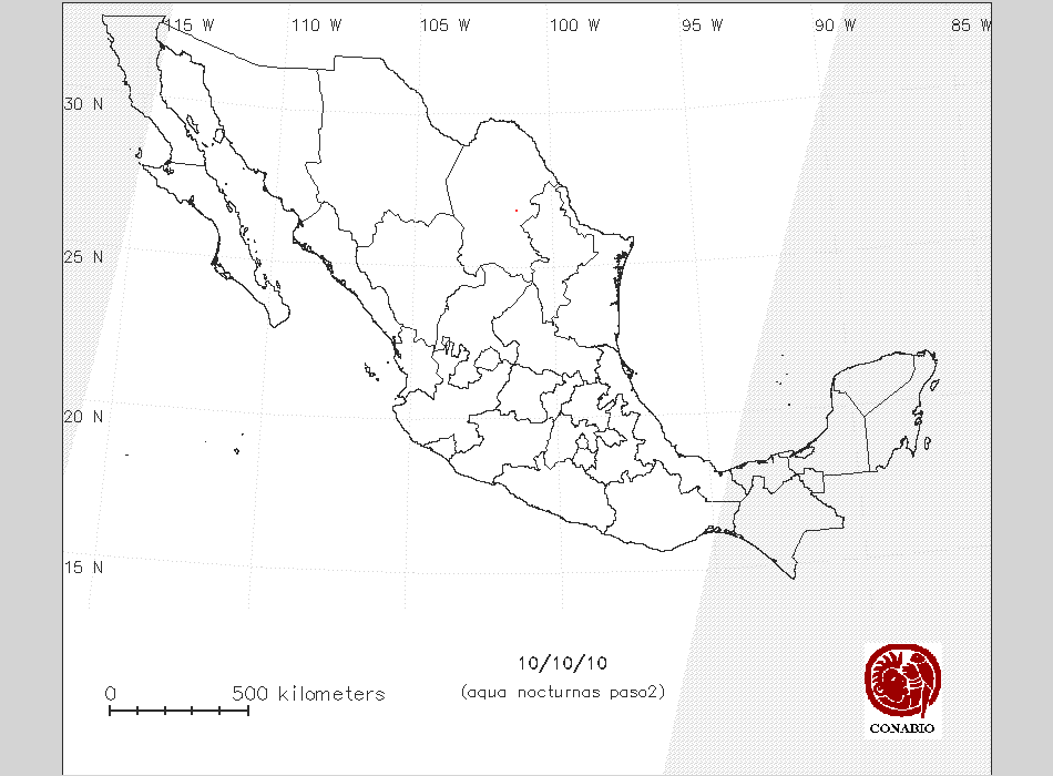 Se considera como punto de calor al elemento espacial mínimo de la imagen (pixel) que reporta una temperatura elevada. Para las imágenes diurnas la temperatura mínima considera es de 42 C y para las imágenes nocturnas es de 25 C. |