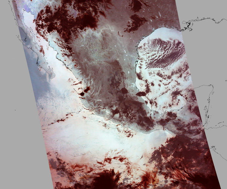 Nubosidad en el terreno:10% Nubosidad sobre México:7% Datos nulos en la escena:28% Datos nulos sobre México:4% |