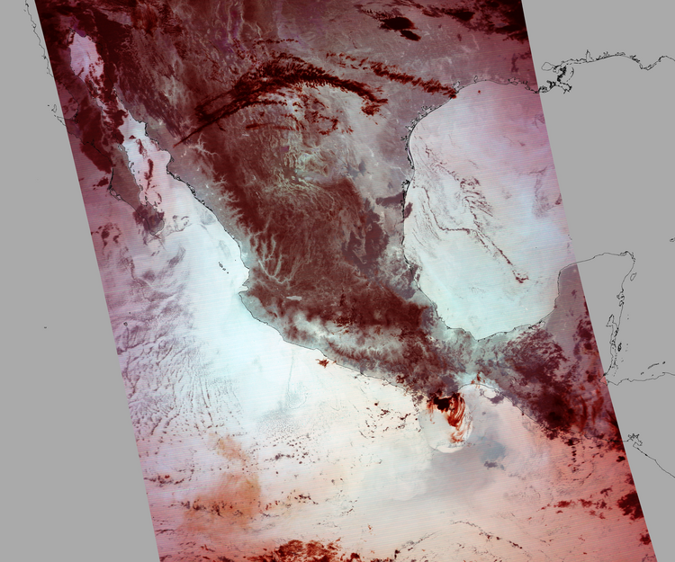 Nubosidad en el terreno:4% Nubosidad sobre México:2% Datos nulos en la escena:28% Datos nulos sobre México:4% |