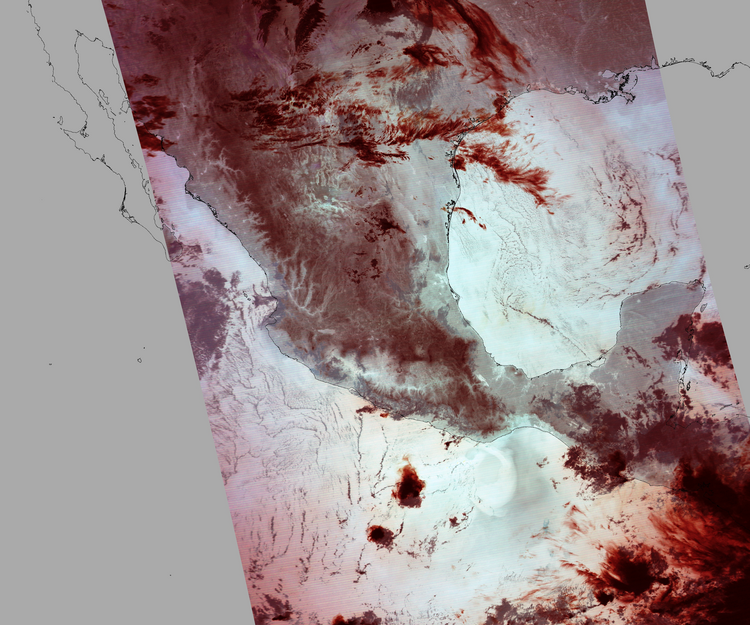 Nubosidad en el terreno:5% Nubosidad sobre México:2% Datos nulos en la escena:29% Datos nulos sobre México:8% |