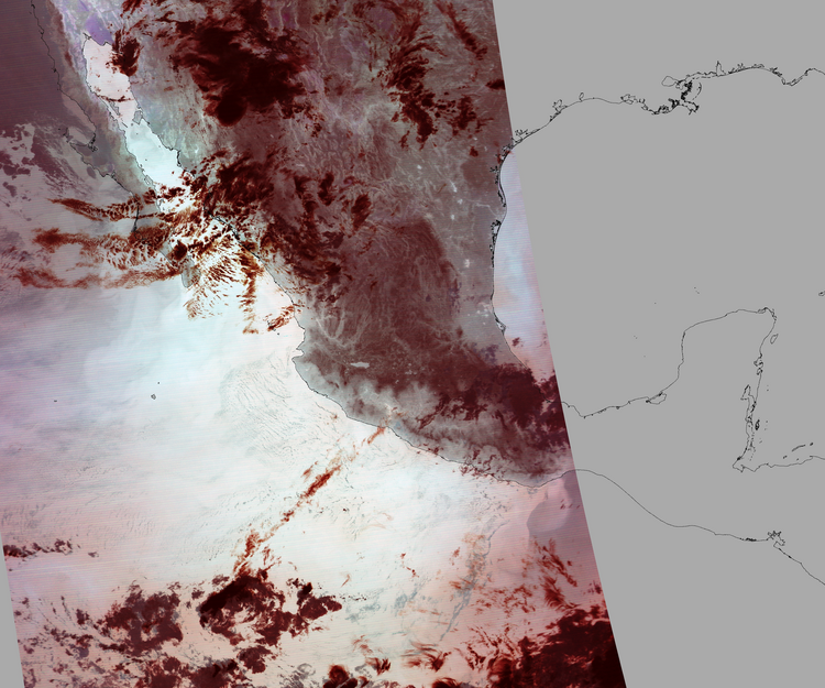 Nubosidad sobre el terreno:11% Nubosidad sobre México:10% Datos nulos en la escena:33% Datos nulos sobre México:13% |