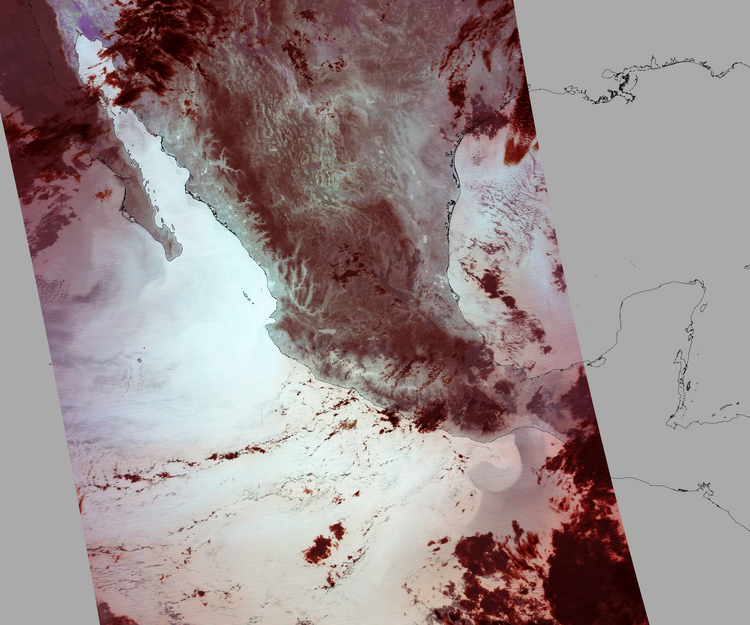 Nubosidad en el terreno:5% Nubosidad sobre México:2% Datos nulos en la escena:28% Datos nulos sobre México:8% |