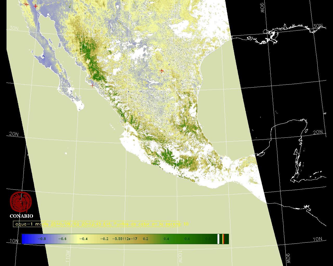 Los valores del índice van de -1 a 1, entre más cercano al valor 1 la vegetación presenta mayor vigor. Los índices de vegetación son utilizados para conocer el comportamiento de la vegetación tanto espacial como temporal. |