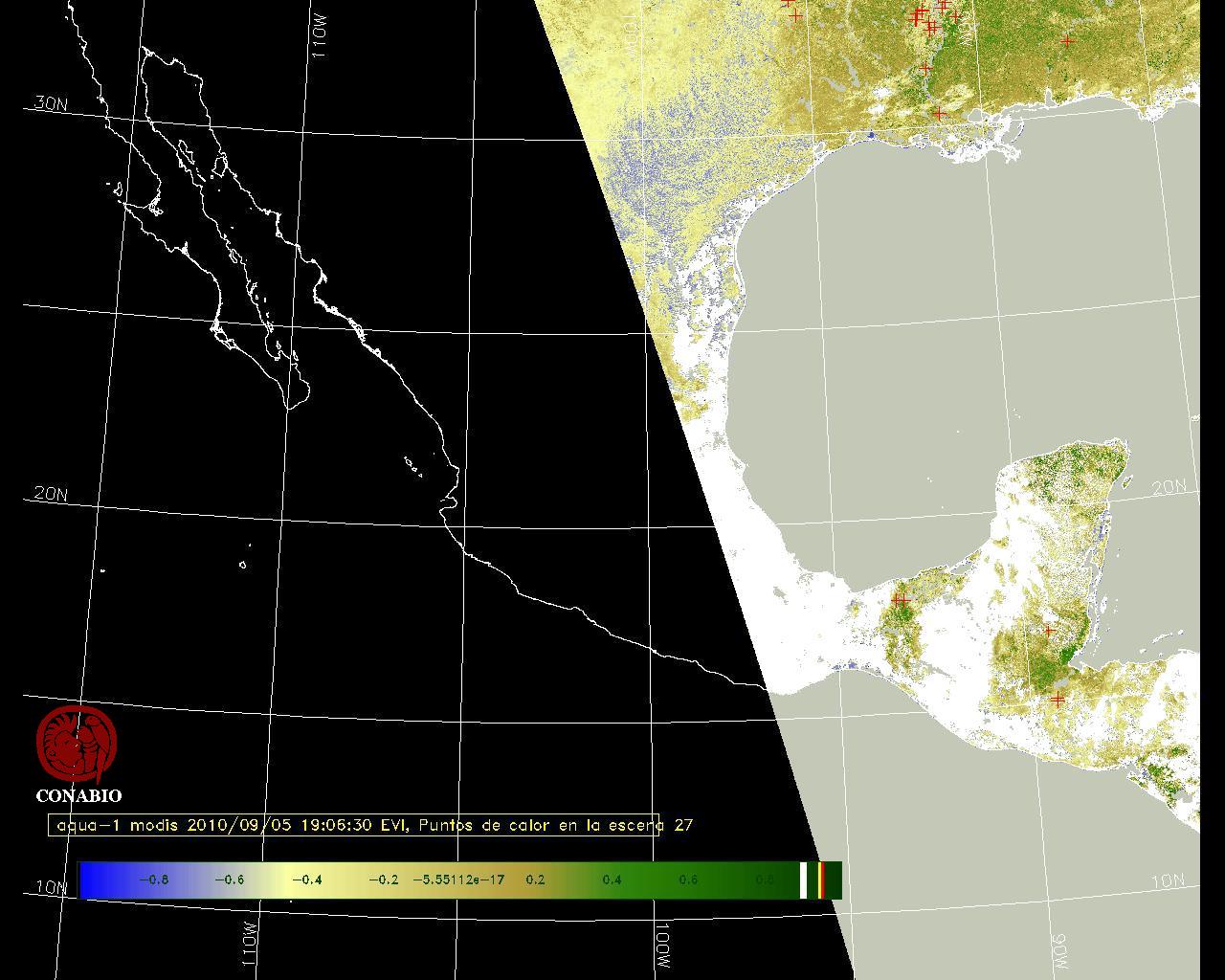 Se considera como punto de calor al elemento espacial mínimo de la imagen (pixel) que reporta una temperatura elevada. Para las imágenes diurnas la temperatura mínima considera es de 42 C y para las imágenes nocturnas es de 25 C. |